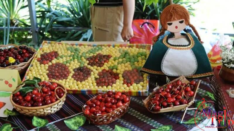 Първи ден /27.06.2026 г./ – Отпътуване сутринта от гр.Попово/В.Търново към Кюстендил, който е овощната градина на България. Често така наричат града известен в цялата страна със своите череши, ябълки и сливи. Първият етап на празника преминава под надслов - „Черешата в занаятите”. Излагат се произведения на изкуството, посветени на черешата - кукли, бижута, пластики, икони и различни автентични произведения, майсторски изработени от сръчните ръце на художници и занаятчии. Паралелно с това се провежда фолклорния празник “Черешчица род родила”. В богата художествена програма състави, танцови формации и индивидуални певци представят магията на черешата и въздействието й върху българския фолклор. Акцентът на празника е изложението с конкурсен характер, в което вземат участие читалища, неправителствени организации, сдружения, детски градини и училища от Кюстендил и региона. Отпътуване към Етно село Тимчевски. Настаняване в комплекса. Почивка и свободно време. Вечерта вечеря в ресторанта на хотела – богато меню от специалитети на македонската кухня, алкохолни и безалкохолни напитки и жива музика. Нощувка.